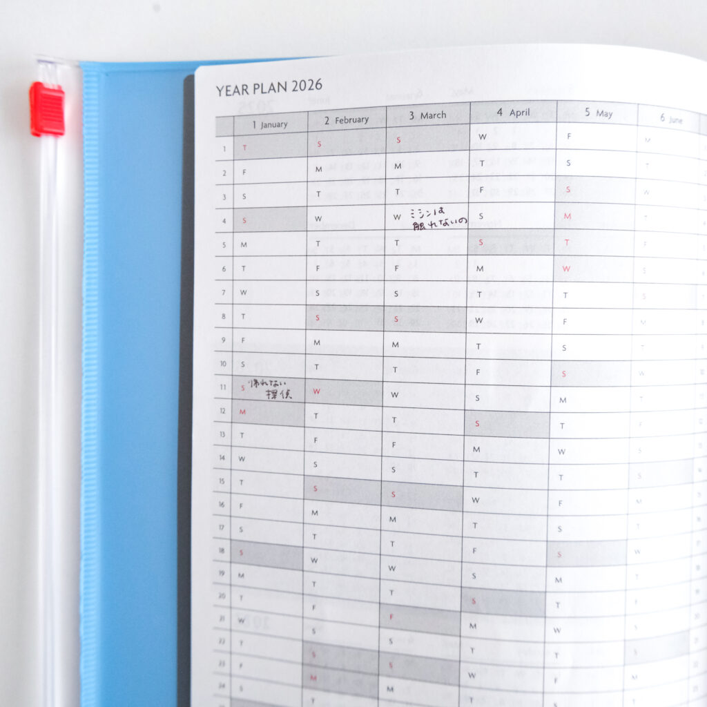 他の手帳を使っていたときも、なかなか使い道が見つからなかった「YEAR PLAN」のページ。