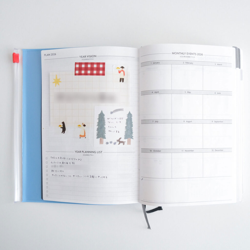 左ページの「YEAR VISION」には、この1年を象徴するような大きなテーマを。その下の「YEAR PLANNING LIST」には、やりたいことを大まかに書き出しました。