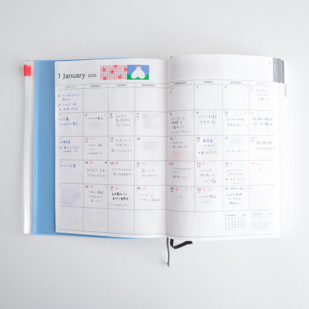 毎月ページをつくるたのしさや自由度はなくなりますが、自分でセットアップする手間がない分、無理なく続けられると感じました。