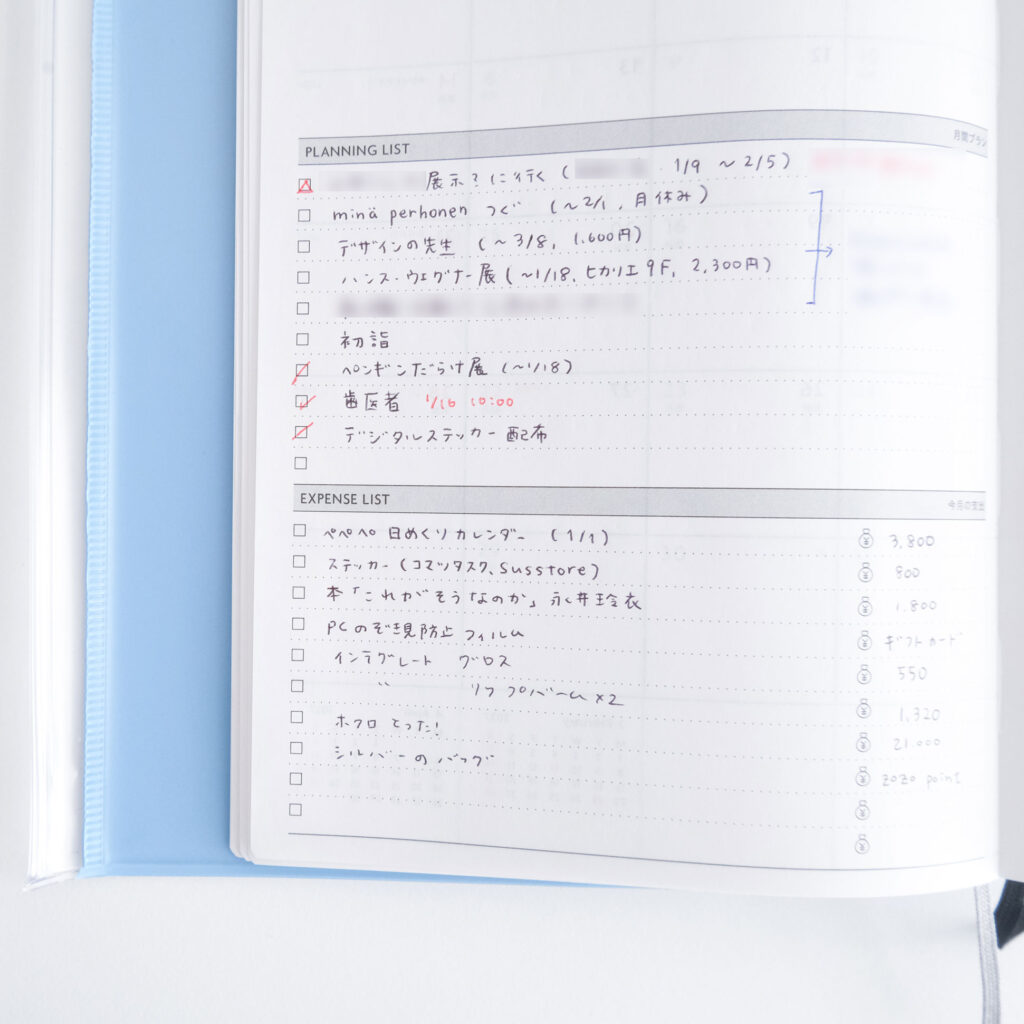 行きたい展示などは期限も一緒に記して、なんとなくのスケジュールの目安に。