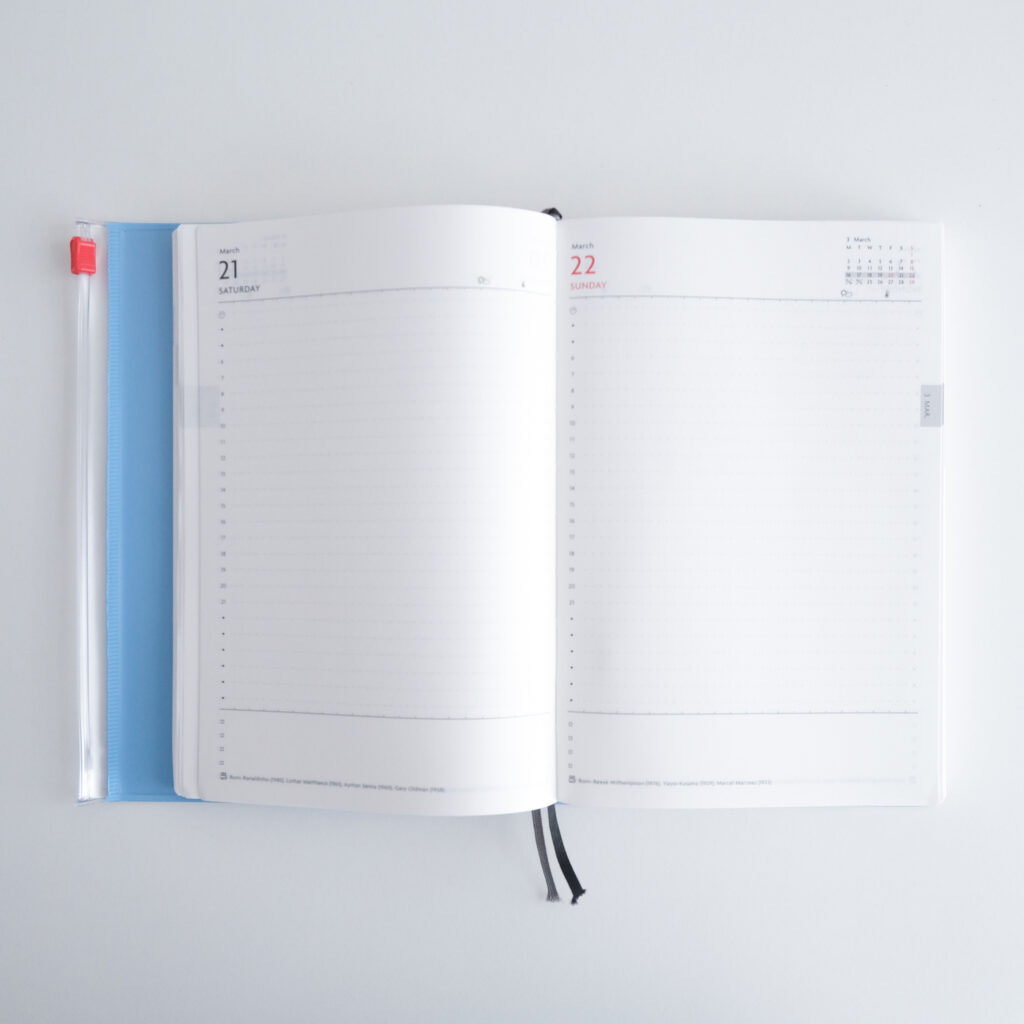 学生の頃に使い始め、数年間離れたのちに戻ってきました。歴代の手帳の中では一番馴染みと愛着のあるブランドです。