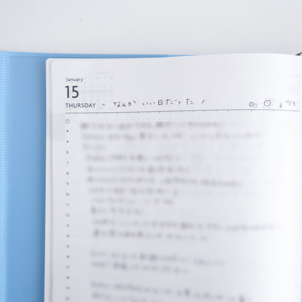 1日1ページタイプを選んだのは、出来事だけでなく、その時のモヤモヤや思考をすべて書き留めておきたかったから。