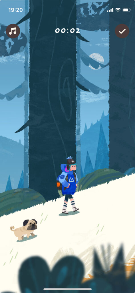 「集中旅行者」は、仕事や勉強に集中したいときに便利なタイマーアプリ。作業時間に応じてかわいいキャラクター(とパートナー)が山をどんどん登っていき、登頂を目指すというもの。