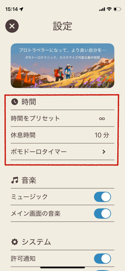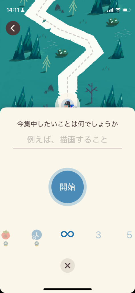 - ポモドーロモード(有料)を利用したい場合は、同じく「時間設定」から「🍅」を選択