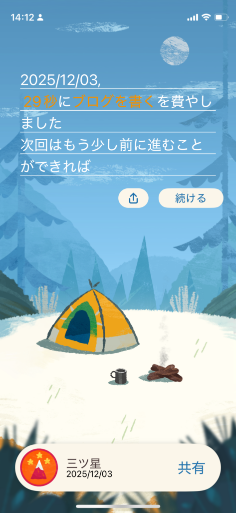 登頂や作業時間はノートや棒グラフなどで記録され、記録に応じてバッジが付与されるなど、たのしみながら記録・振り返りができます。