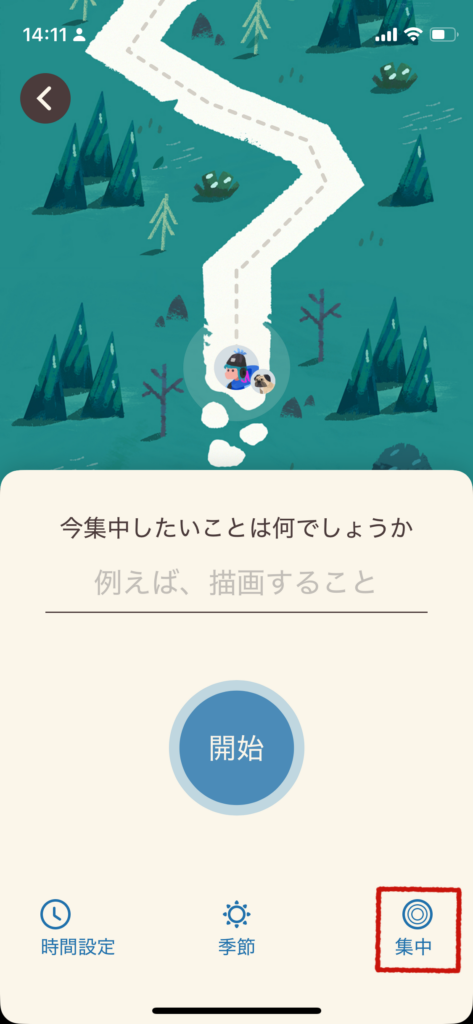 画面右下「通常の集中」をタップすると、「集中モード」に変わります。